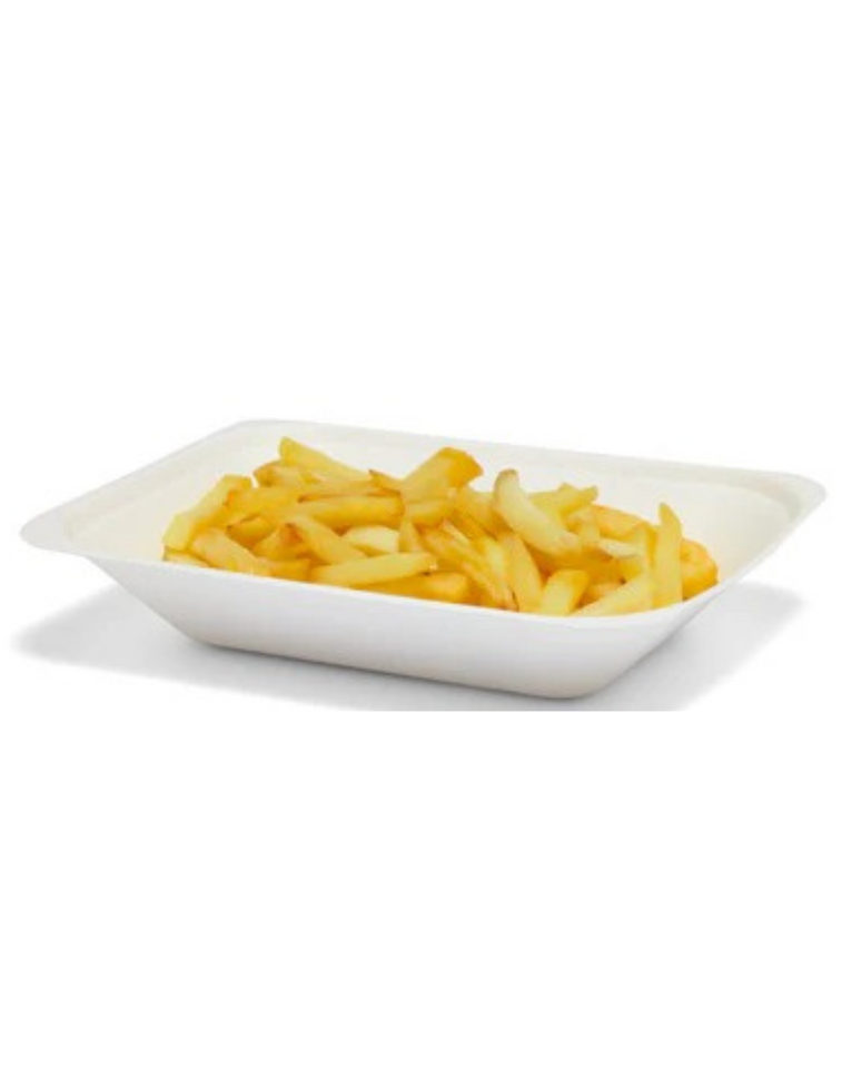 Serve your delicious sides and snacks with confidence using our 7" Compostable Bagasse Chip Trays. Made from natural sugarcane fibers (bagasse), these eco-friendly trays offer a durable, grease-resistant, and sustainable alternative to plastic and polystyrene packaging.